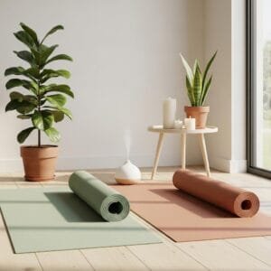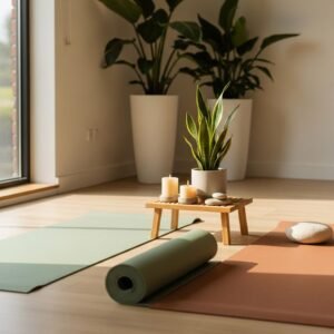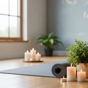 - Creëer een rustige ruimte: Rol je mat uit op een plek waar je niet gestoord wordt. Dim de lichten, steek misschien een kaarsje aan en zet je telefoon op stil.